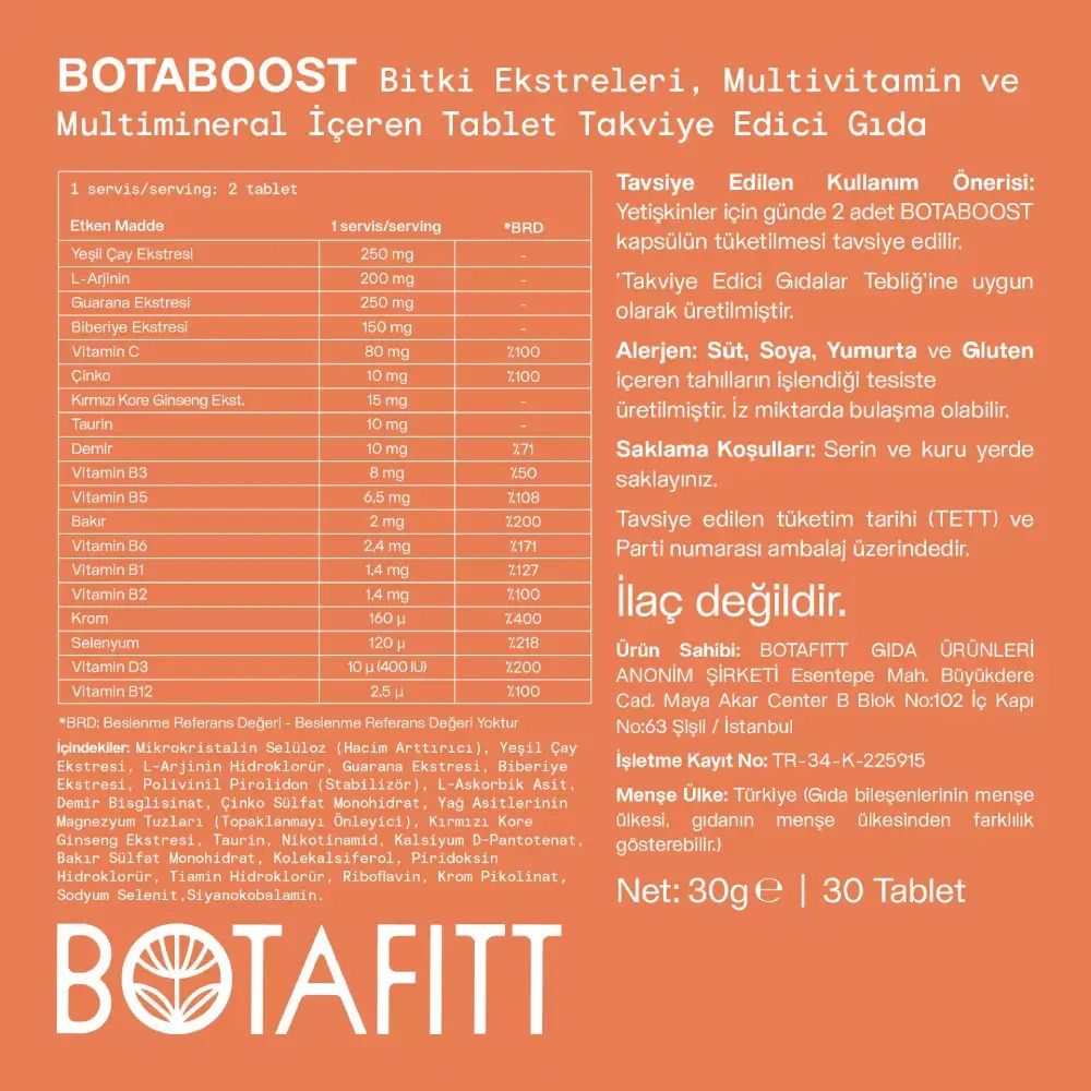 Guarana Ekstresi, Yeşil Çay Ekstresi, Kore Ginsengi Ekstresi, L- arginine, Taurine, B & C Vitamini, Krom Pikolinat & Selenyum & Bakır & Demir.